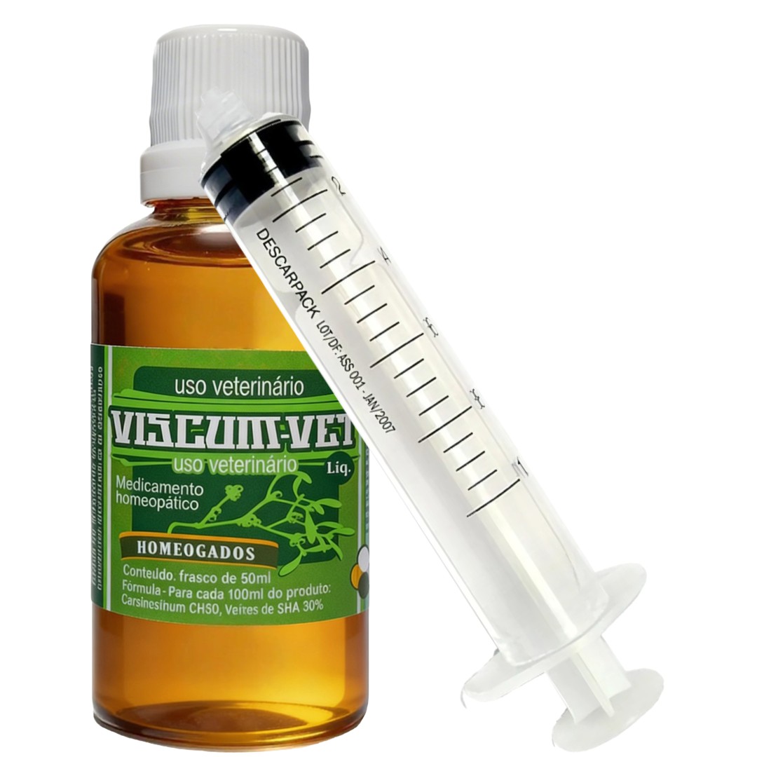 Forma de ministrar o Viscum-vet: Do 1º ao 3º dia de tratamento: 5 gotas(1x ao dia); Do 4º ao 6º dia de tratamento: 5 gotas (2x ao dia), totalizando 10 gotas; A partir do 7º dia: 10 gotas (2x ao dia), totalizando 20 gotas;